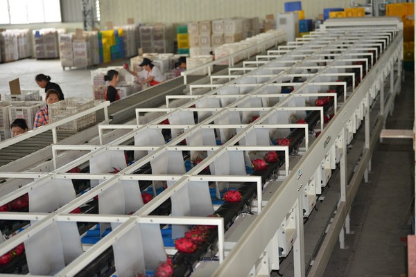 火龍果原產于西半球赤道附近,中美洲等熱帶地區,后傳入我國,在海南、廣西、廣東、福建、云南等省區均有種植。其中,廣西南寧擁有國內最大的火龍果生產基地,種植面積達22萬畝。近年來,南寧大力發展火龍果產業,但火龍果的分選一直依靠消耗大量的人力物力單純的人工操作,然而這種缺乏標準化的分選操作嚴重制約了南寧火龍果產業的發展。為了推動當地火龍果的品牌建設,南寧決定從火龍果產業的規模化,標準化、專業化入手,引入了江西綠萌所研發生產的火龍果自動化分選線,以改變成本高、效率低的人工分選現狀。