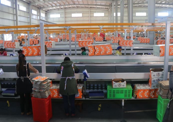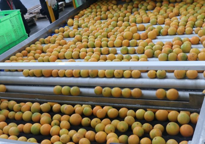 1000多萬(wàn)的設(shè)備、100多位工人、1秒鐘可以分選11個(gè)橙子、日處理量400噸……