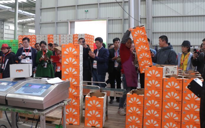 打包好的褚橙通過(guò)傳動(dòng)帶送出