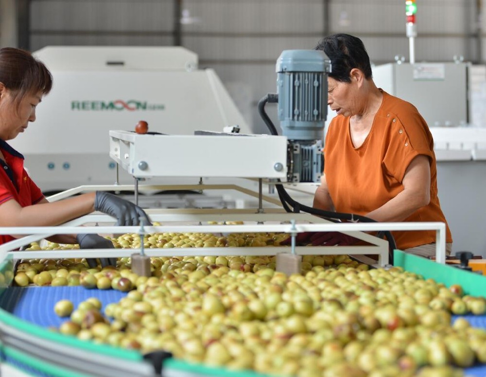 綠萌棗子分選線解決方案針對棗子這類小型水果而研發,可對棗子的顏色和重量進行分選分級。