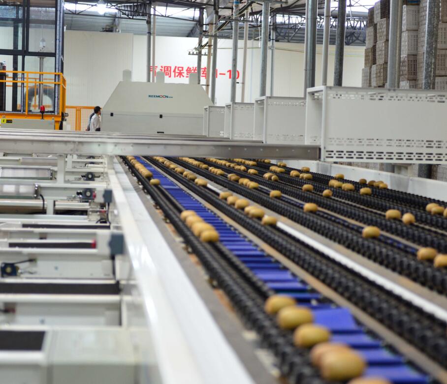 通過綠萌 Fruscan S7檢測技術對獼猴桃的大小、外觀進行檢測識別,根據客戶設置的參數,通過大數據分析進行分選。把同一品質的獼猴桃輸送到同一出口處進行包裝。