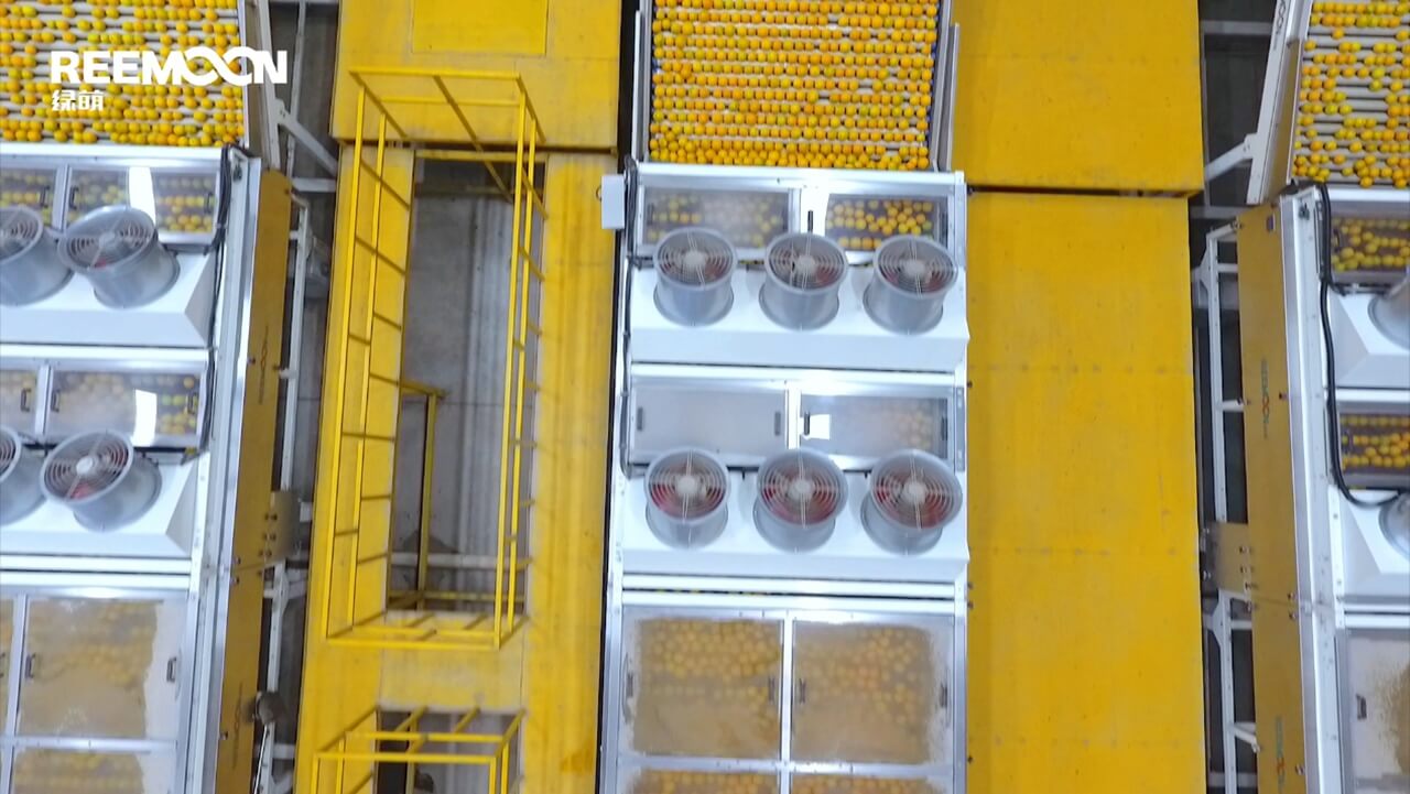 用滾筒式烘干機(jī)利用離心風(fēng)機(jī)吸收游離的熱風(fēng)形成循環(huán)從而對(duì)沃柑的表皮進(jìn)行烘干。
