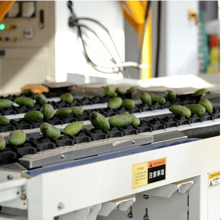 綠萌芒果分選線解決方案針對芒果這類橢圓形的水果而研制,可對芒果的重量進行分選分級,保持每箱芒果在大小上的一致性,確保每箱品質的穩定性。