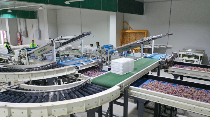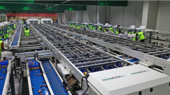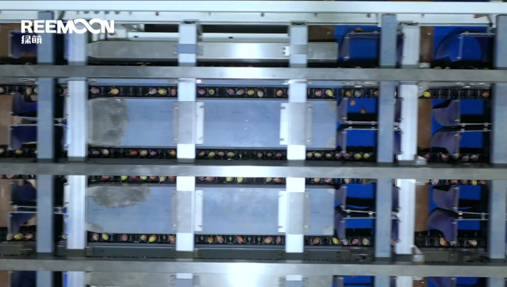 采用綠萌內(nèi)部品質(zhì)無損檢測技術(shù),無需切開西梅就能檢測內(nèi)部的糖度情況,糖度相同的西梅將被輸送到同一個出口進行裝箱。